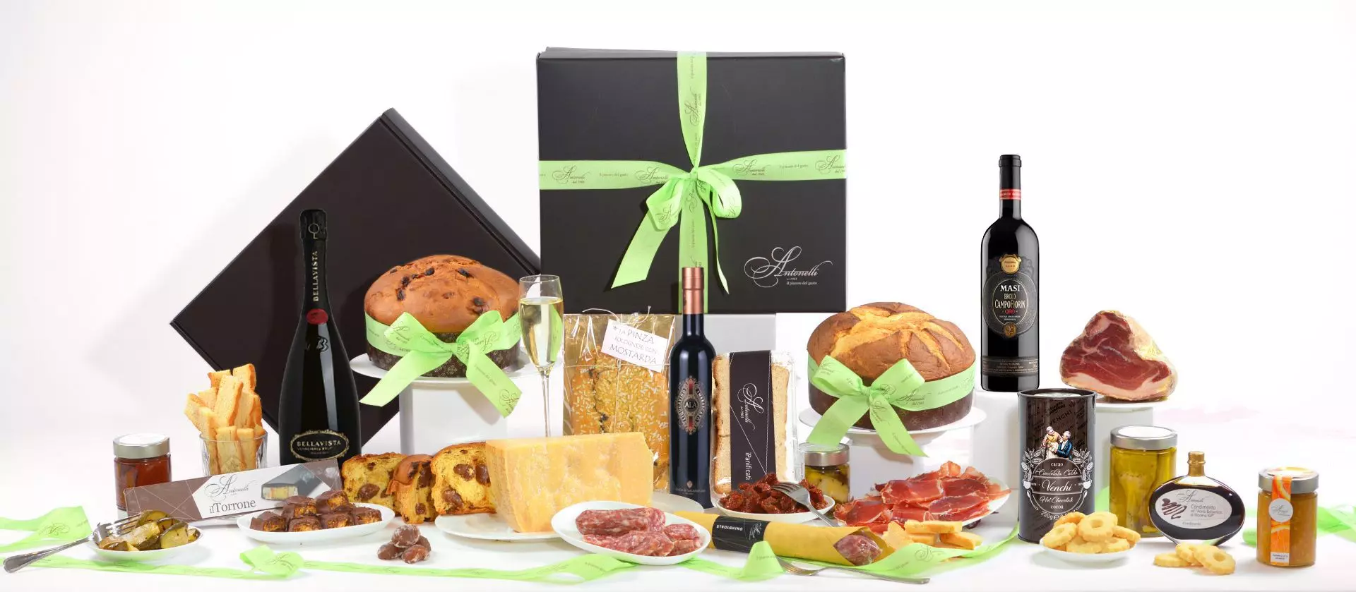 GIFT BOX CHOCO BAULE ELITE nastro e fiocco in tessuto verde e oro, legato a mano